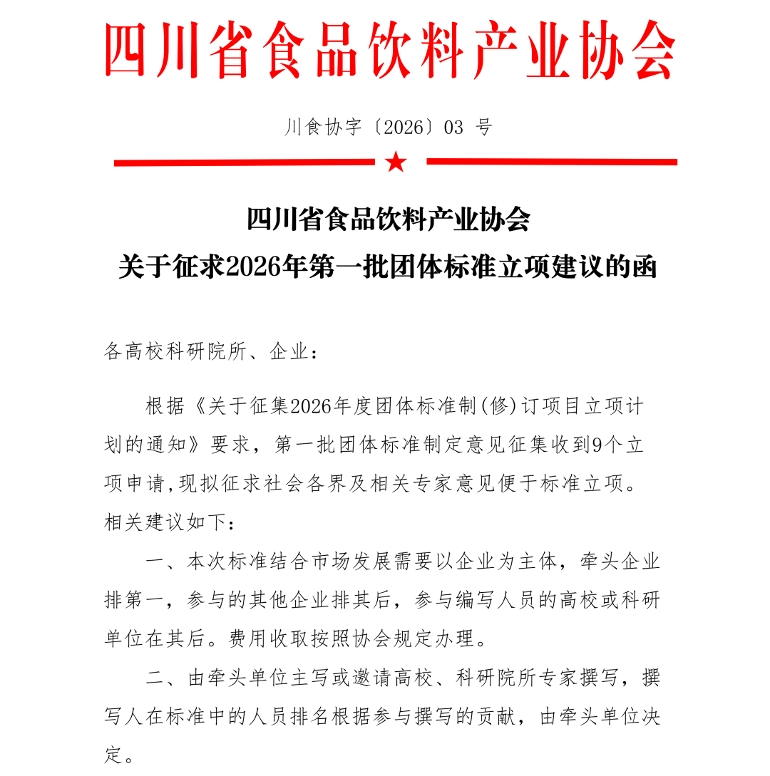 关于征求2026年第一批团体标准立项建议的函